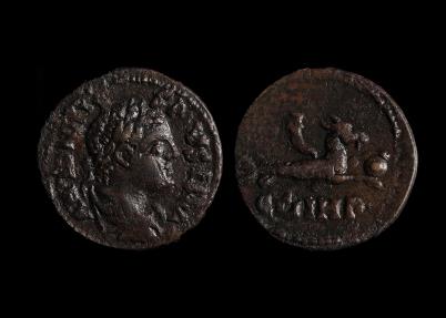 Elagabalus, Mysia, Parium Ae22, 218-222 AD. ANTONINVS PIVS FEL AV, laureate, draped bust r. Rev., C G I H P, Capricorn springing r., holding globe between front legs. RPC Online 3860. 6.11g, 23mm. |