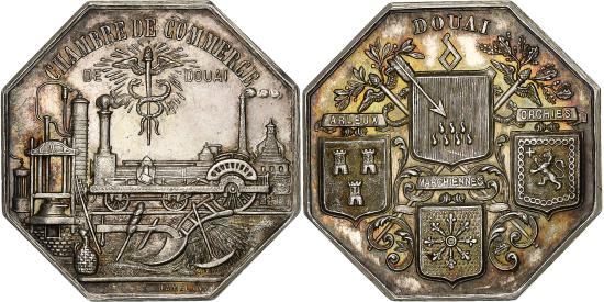 | | France, Token, Chambre de commerce de Douai, Silver, Hamel, | | | Industrial view of the town of Douai., Shields of Douai, Arieux, Marchiennes, Orchies. | | FEATURES |