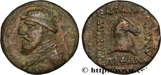 PARTHIAN KINGDOM - MITHRADATES II Dichalque c. 123-88 AC Ecbatane R2 copper