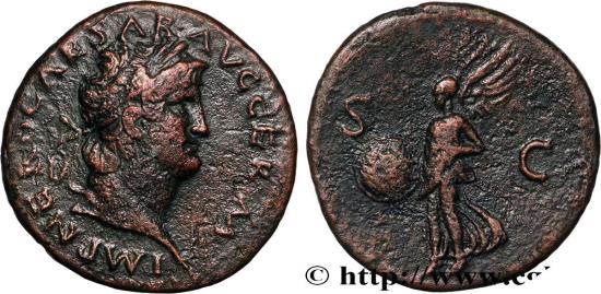 Commentary : Monnaie bien centré des deux côtés présentant une usure régulière. Joli portrait de Néron. Patine marron