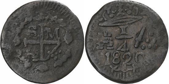 | Colombia, 1/4 Réal, 1820, Santa Marta, Copper, , KM:B4 |