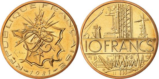| | Coin, France, Mathieu, 10 Francs, 1981, Paris, , Nickel-brass, KM:940 | | | Mathieu, Stylized map of france, High tension towers and electric transmission wires, denomination at center | | FEATURES |