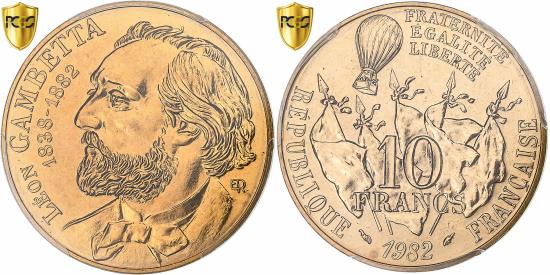 | France, 10 Francs, Gambetta, 1982, Paris, Copper-nickel, PCGS, |