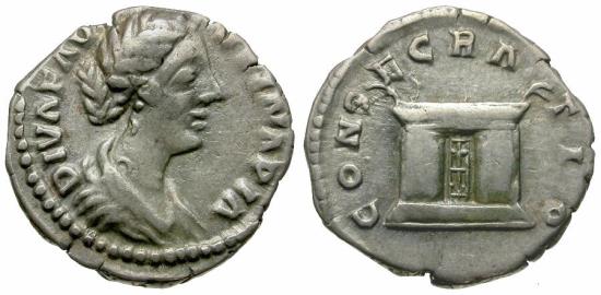 Title: Diva Faustina II (died AD 175/6) AR Denarius / Altar