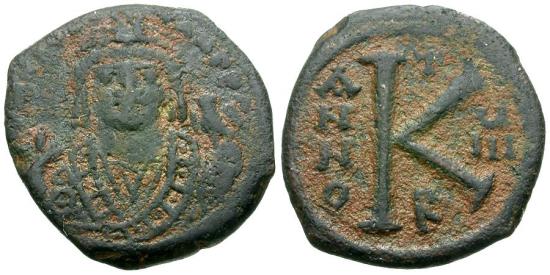 Title: *Sear 535* Byzantine Empire. Maurice Tiberius (AD 582-602) Æ Half Follis