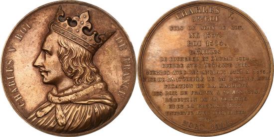 | | France, Medal, Les Rois de France, Charles V, 1836, Bronze, Caqué, | | | Bust of Charles V on the left, CHARLES V ROI DE FRANCE / 1836 CAQUE | | FEATURES |