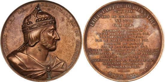 | | France, Medal, Les Rois de France, Louis I, 1839, Bronze, Caqué, | | | Bust of Louis I on the right, LOUIS I DIT LE DEBONNAIRE ROI DE FRANCE / CAQUE F 1839 | | FEATURES |