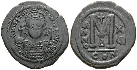 | Justinian I, 527 - 565 AD, Follis of Constantinople, 37mm |