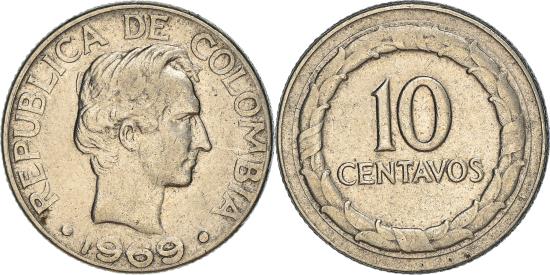 | | Coin, Colombia, 10 Centavos, 1969, , Nickel Clad Steel, KM:226 | | | Head of Santander right, date below, Denomination within circular wreath | | FEATURES |