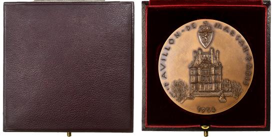 | | France, Medal, Pavillon de Marsan, 1000 ans de tradition viking, 1954, Bronze | | | View of the Pavillon de Marsan., Viking mythological representation., In its original case. Cleaned, hairlines., PAVILLON • DE • MARSAN • PARIS / 1954, MILLE • ANS • DE • TRADITION • VIKING • EN • NORVÈGE • | | FEATURES |