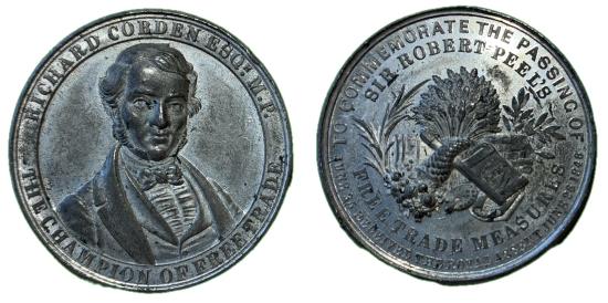 Repeal of the Corn Laws, 1846, WM medal, unsigned, obv. facing bust of Richard Cobden, 39mm (BHM 2238), about extremely fine Richard Cobden (1804-1865), politician, manufacturer, and free-trade campaigner