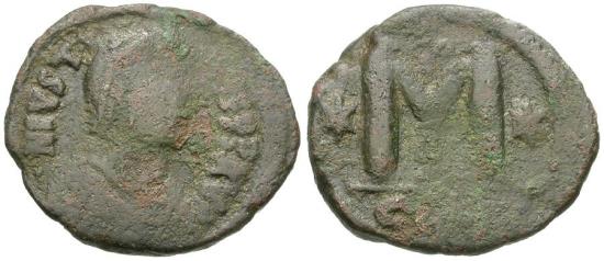 Title: *Sear 62* Byzantine Empire. Justin I (AD 518-527) Æ Follis