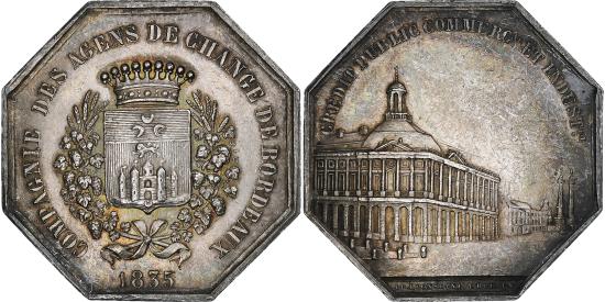 | | France, Token, Compagnie des Agents de Change de Bordeaux, 1835, Silver | | | Crowned shield of Bordeaux within a wreath., Bordeaux stock exchange. | | FEATURES |