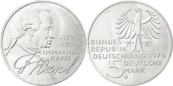 | | Coin, GERMANY - FEDERAL REPUBLIC, 5 Mark, 1974, Munich, Germany, | | | Legend divides eagle and denomination, Bust at left facing right, name and dates at right | | FEATURES |