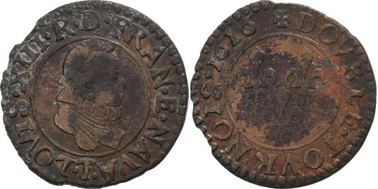 | | France, Louis XIII, Double Tournois, 1616, Nantes, Copper, , Gadoury:6 | | | FEATURES |