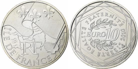 | | France, 10 Euro, Euros des régions, Ile De France, 2010, Paris, Silver | | | Value at center, wreath horizontal | | FEATURES |