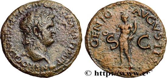 NERO CLAVD CAESAR AVG GER P M TR P IM P P Tête nue de Néron à droite (O°), globe à la pointe du cou