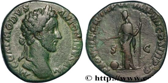 COMMODUS Augustus Sesterce 181 Rome R1 copper Obverse : M COMMODVS - ANTONINVS AVG Tête laurée de Commode à droite (O*) Reverse : PROV DEOR TR P VI - IMP IIII COS III P P/ S|C Providentia (la Providence) drapée, debout à gauche, tenant un bâton de la main droite et un long sceptre vertical de la main gauche ; à ses pieds, à gauche, un globe Commentary : Monnaie centrée présentant un joli portrait de Commode. Patine verte au droit, marron au revers