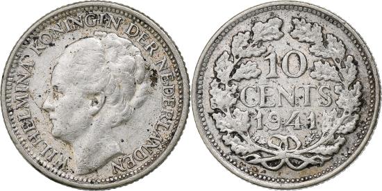 | Netherlands, Wilhelmina I, 10 Cents, 1941, Silver, , KM:163 |