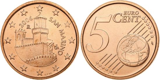 | | San Marino, 5 Euro Cent, 2006, Rome, Copper Plated Steel, , KM:442 | | | Guaita tower, Value and globe, M. Frantisek Chochola | | FEATURES |