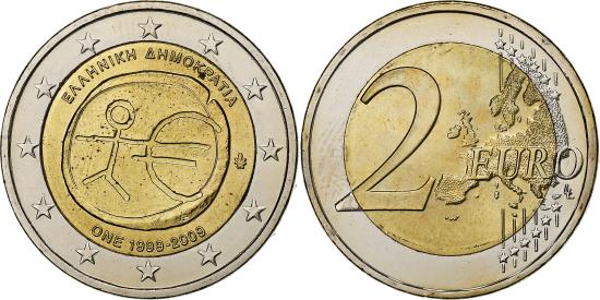 | | Greece, 2 Euro, EMU, 2009, Athens, , Bi-Metallic, KM:227 | | | Stick figure and Euro symbol | | FEATURES |