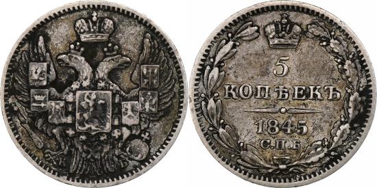 | | Russia, Nicholas I, 5 Kopeks, 1845, Saint Petersburg, Silver, , KM:163 | | | FEATURES |