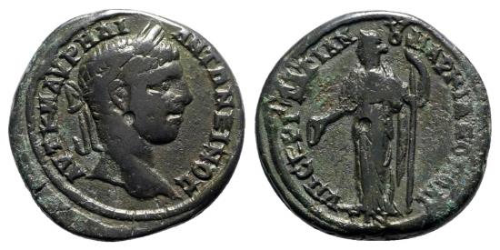 Elagabalus, 218 - 222 AD, AE26, Marcianopolis, Dikaiosyne
