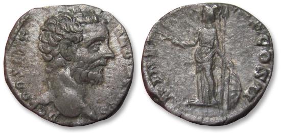 AR denarius Clodius Albinus. Rome mint 194-195 A.D. - MINER PACIF COS II, helmeted Minerva standing left -