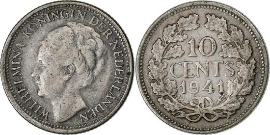 | Netherlands, Wilhelmina I, 10 Cents, 1941, Silver, , KM:163 |
