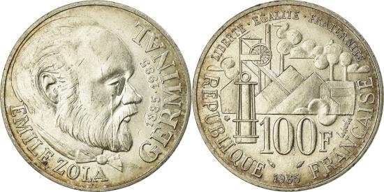 | | Coin, France, Germinal, 100 Francs, 1985, , Silver, KM:957, Gadoury:900 | | | Germinal, Head right | | FEATURES |
