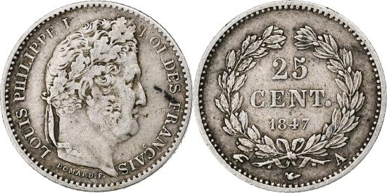 | | France, Louis-Philippe, 25 Centimes, 1847, Paris, Silver, | | | FEATURES |