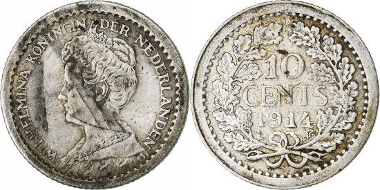 | Coin, Netherlands, Wilhelmina I, 10 Cents, 1914, , Silver, KM:145 |