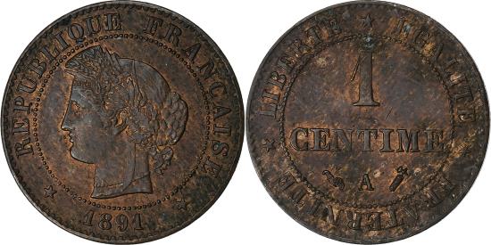 | | France, Centime, Cérès, 1891, Paris, Bronze, , Gadoury:88, KM:826.1 | | | Cérès, Laureate head left, Denomination | | FEATURES |