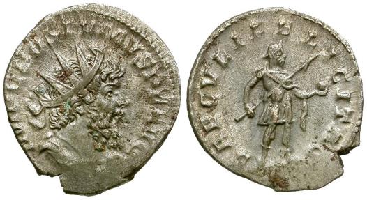 Title: Postumus (AD 260-269) AR Antoninianus / Postumus in Military Dress