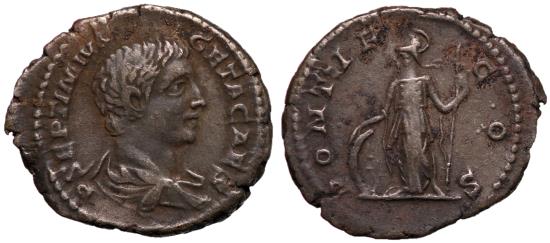 | Geta, 198 - 209 AD, Silver Denarius with Minerva, Interesting Portrait |