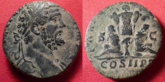 | SEPTIMIUS SEVERUS AE sestertius. PART ARAB PART ADIAB, captives under trophy of arms. |