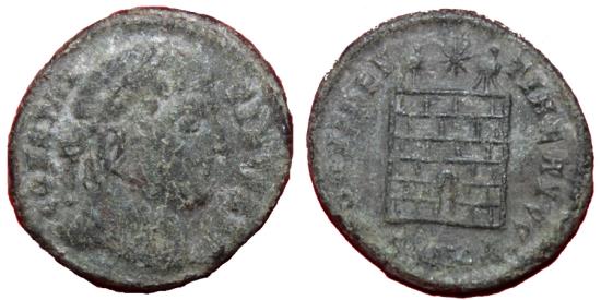 CONSTANTINVS AVG Laureate head right PROVIDENTIAE AVGG City gate with two turrets, star above. Weight: 3.26 gr Diameter: 20 mm