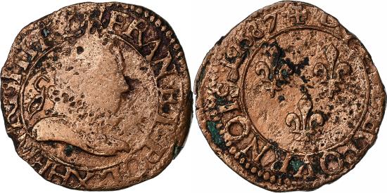 | | France, Henri III, Double Tournois, 1587, Amiens, Copper, | | | FEATURES |