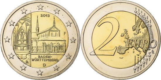 | | Germany, 2 Euro, Baden-Wurttemberg, 2013, Stuttgart, Bi-Metallic, , KM:314 | | | Maulbrunn Cloiser, Relief map of Europe, stars, lines and value, BADEN-WURTTEMBERG | | FEATURES |
