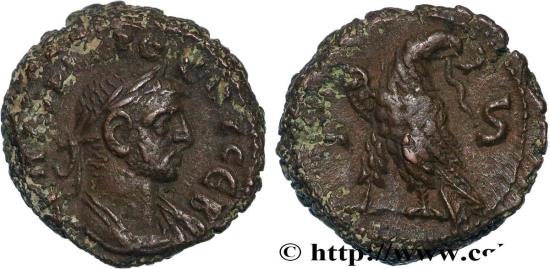 PROBUS Tétradrachme 280-281 Alexandrie, Égypte copper Obverse : Buste lauré et cuirassé de Probus à droite, vu de trois quarts en avant (B*) Reverse : Aigle debout à droite, les ailes fermées, tournant la tête à droite, tenant une couronne dans son bec ; derrière, une branche de palmier transversale Commentary : Monnaie idéalement centrée. Joli buste de Probus. Patine marron