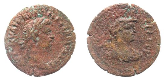 Egypt. Alexandria under Domitian (AD 81-96). AE obol (24mm, 5.75g). Struck in regnal year 2 (AD 82/3). Laureate bust of Domitian r. / Draped bust of Alexandria r., wearing elephant headdress; date around. RPC II, 2483; Dattari 464.
