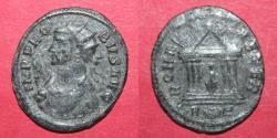 Temple with 6 columns, Roma seated within, holding Victory and scepter.