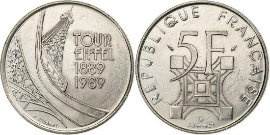 | | France, 5 Francs, Tour Eiffel, 1989, Paris, Nickel Clad Copper-Nickel | | | FEATURES |
