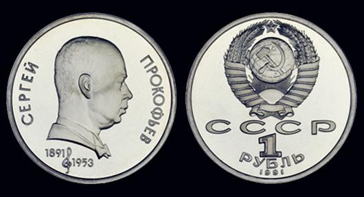 Russia 1 rubel 1991 Sergey Prokofjew- Proof in plastic folie