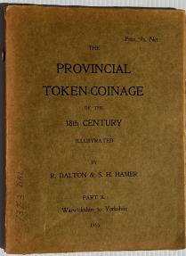 The Provincial Token-Coinage of the 18th Century Illustrated by Richard Dalton & S.H. Hamer, 1915, Part X, Warwickshire to Yorkshire, pages (v), 281-328, fine collotype illustrations with glassine interleaves throughout, original tan card covers, contents clean and fine