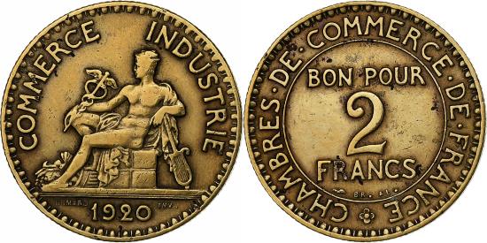 | | France, 2 Francs, Chambre de commerce, 1920, Paris, Cupro-Aluminium, | | | FEATURES |