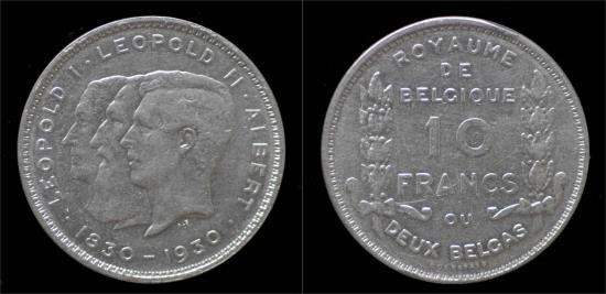 Belgium Albert I 10 frank (2 belga) 1930FR-pos B