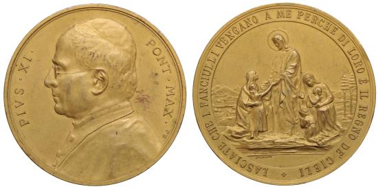 Papal States. Pius XI 1922-1939. Medal 43.50 gr. – 47.0 mm. PIVS • XI • _ PONT • MAX • / + LASCIATE CHE I FANCIULLI VENGANO A ME PERCHE' DI LORO E' IL REGNO DE' CIELI. CM 299; Calò 67. UNC
