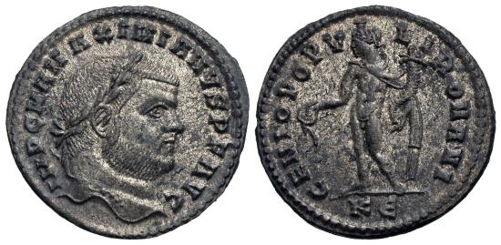 Genius, wearing modius on head, naked but for chlamys over shoulder, standing left, holding patera from which liquor flows and cornucopia.