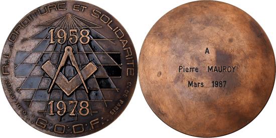 | | France, Medal, Le Grand Orient de France à Pierre Mauroy, 1987, Bronze | | | Médaille offerte à Pierre Mauroy, Premier Ministre | | FEATURES |